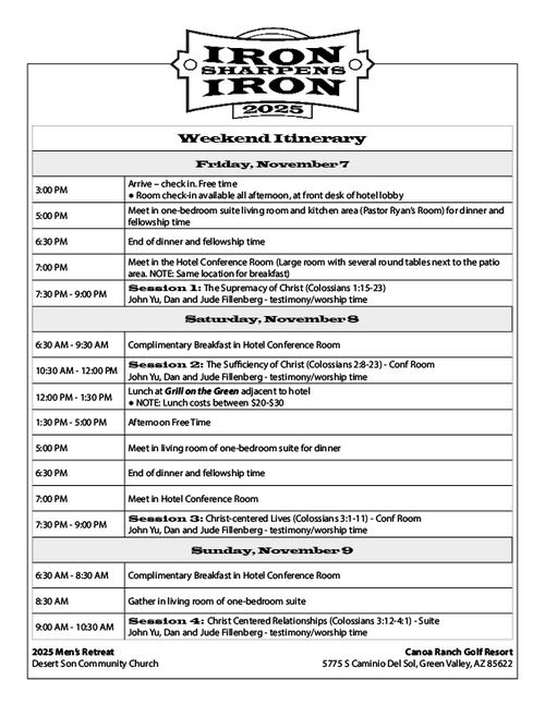 We are pleased to host the 2025 Men’s Retreat at